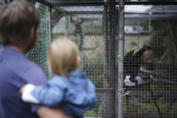 El último día, cuando ya no sabíamos que mas hacer y nos íbamos para el aeropuerto a hacer tiempo porque no paraba de llover, encontramos de casualidad en una carretera secundaria «El jardín Encantado». La dueña, una alemana simpatiquísima nos deleitó con un plato de paté casero, pan recién horneado y manzana asada, acompañado con un vinito blanco que nos supo riquísimo. El jardín era una maravilla, además de flores, había jaulas con monos, loros, guacamayos, un pequeño leopardo, y algún animal más que a Emma le alucinó. Para mi fue la mejor visita, es una pena que no salía en las guías y casi nos lo perdemos.