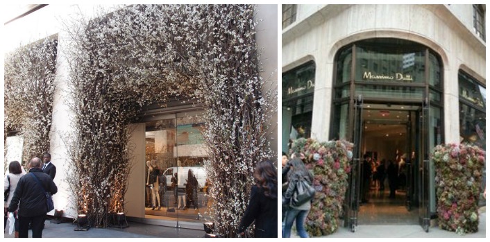 Otros trabajos destacables son estas espectaculares paredes de flores para Givenchy en 2013 o para Stefanel en 2012: