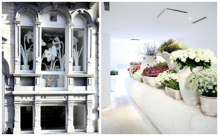 Y para acabar, unas imágenes de su floristería en Bruselas, espectacular con estos enormes maceteros blancos.