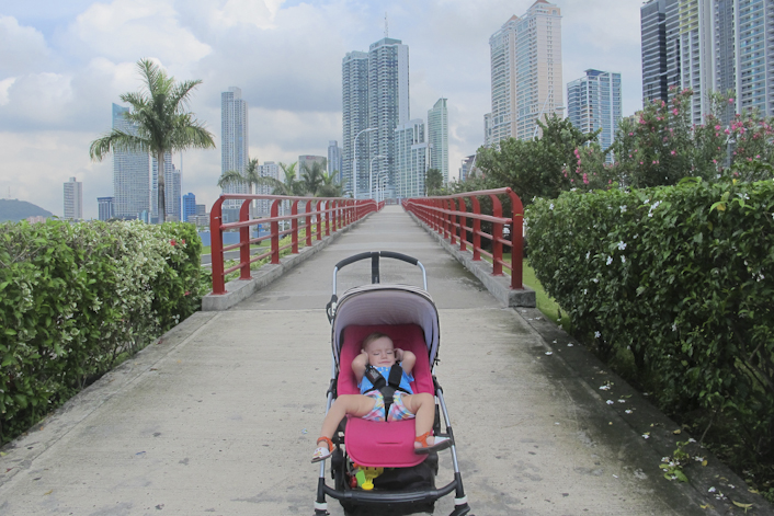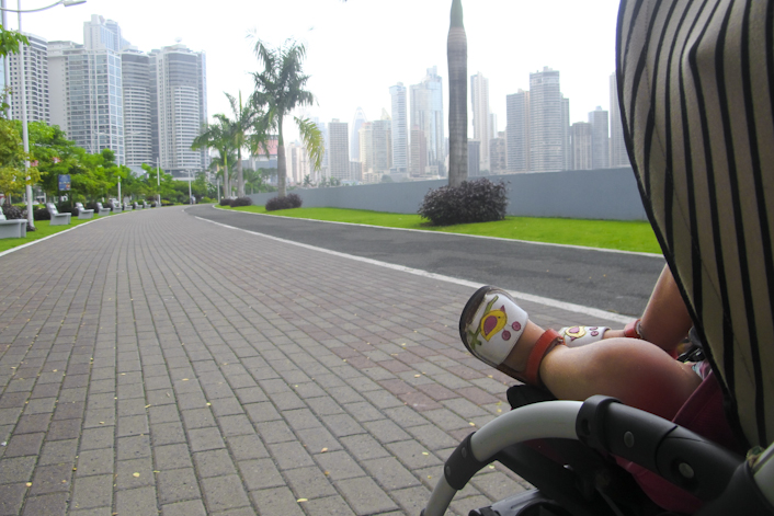 Por ejemplo ayer, bajamos Emma y yo a dar un paseo tranquilo por la Cinta Costera. Vivimos justo delante de ella y apenas la usamos. Aquí la llaman Cinta Costera, pero equivale al Paseo Marítimo de Ciudad de Panamá. Han hecho muchos parques infantiles a lo largo de ella y puedes bordear toda la ciudad, prácticamente hasta la boca del Canal, andando por este paseo. Siempre está lleno de gente corriendo, paseando perros, patinando o en bicicleta.
