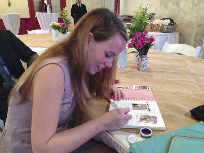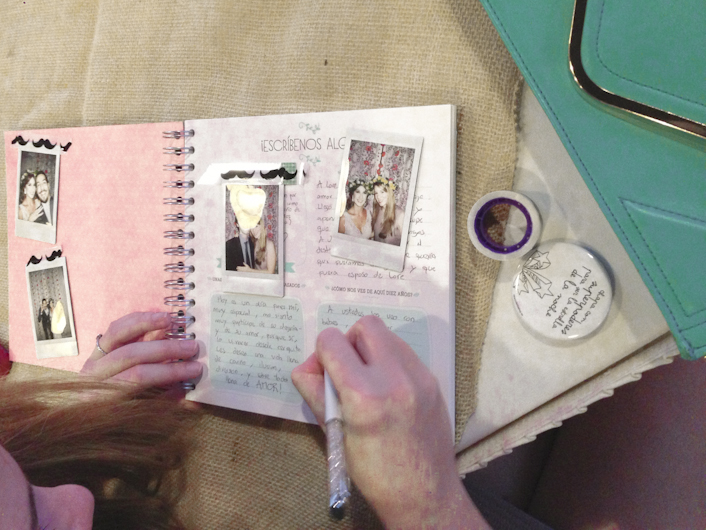 El libro de firmas para bodas de Mr. Wonderful nos vino de perlas porque ya tiene el espacio preparado en cada página para pegar las fotos de la instax, y  además el tamaño coincide bastante bien.