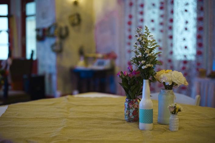 Espero que os haya gustado, aunque no lo parezca porque la boda era pequeña, he trabajado muchísimo durante tres meses preparándolo todo y sobretodo los dos días antes de la boda. Cuando me llegaron las flores fue una locura, me fallaron la mitad y tuve que cambiar de estrategia, luego me sobraron muchísimas así que menos mal que me fallaron la mitad… De todo se aprende y estoy encantada con el resultado y sobretodo, he disfrutado mucho durante todo el proceso. Hice mil pruebas, mil botes, mil iniciales y no paré hasta que quedó todo a mi gusto. Y tan contenta, ni nervios ni estrés en ningún momento. Ojalá todos los trabajos fueran así…